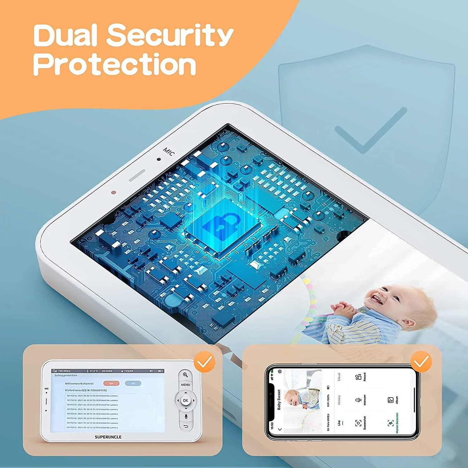 This wireless baby monitor comes with a long-range connection, giving you the freedom to move around your home without losing signal. Its secure connection ensures that your feed is safe and private, so you can enjoy real-time video without worry.